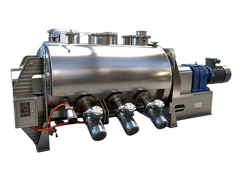 When the material flows past the high-speed choppers, it is cut and scattered by the blades, achieving uniform mixing in short time. The choppers help to remove lumps in the raw material, chop pasty additives, and prevent formation of agglomerates on liquid addition.