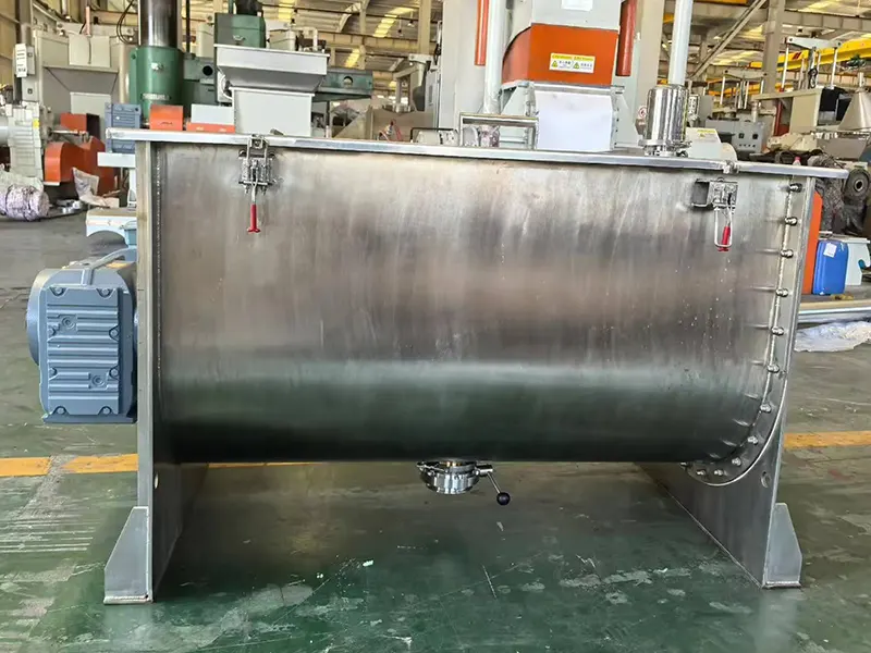 The discharge outlet is located at the bottom center of the trough. With the assistance of the outer ribbon, materials are efficiently pushed toward the outlet, enabling quick and complete discharge with minimal residue and no dead zones.