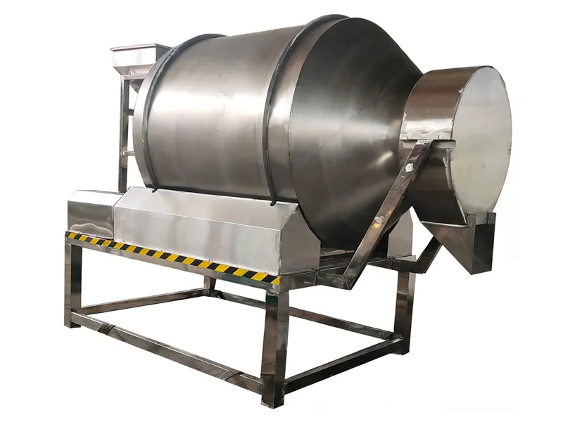 The stainless steel drum mixer ensures gentle, thorough blending through a rotating tumbling action, preserving material integrity while achieving batch-to-batch consistency.